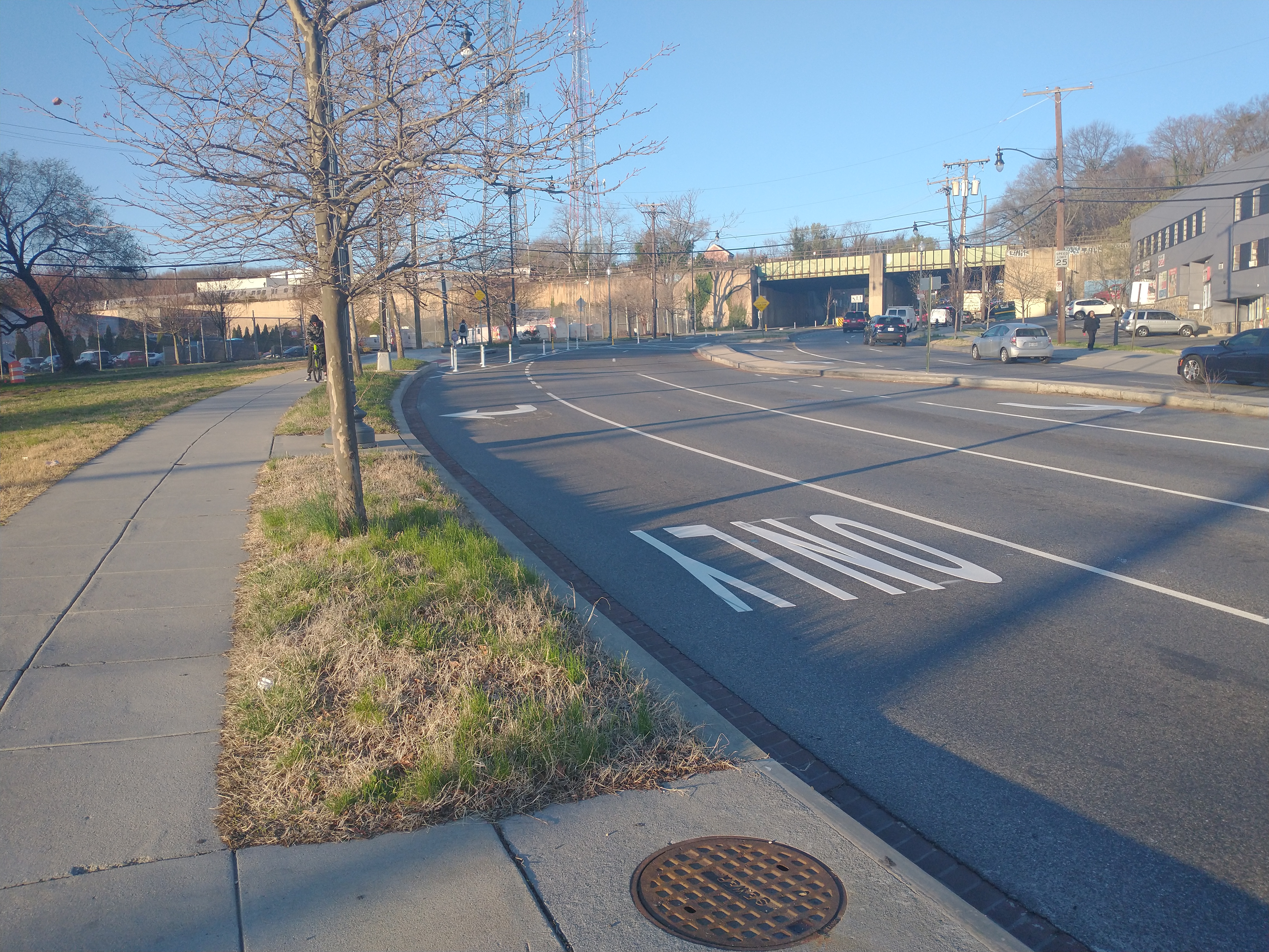 The District Department of Transportation (DDOT) recently installed a short two-way cycletrack on the south side of Riggs Road between 1st Place NE and South Dakota Avenue NE. DDOT initially proposed installing the cycletrack back in 2022. Plans stalled due to staffing issues before DDOT reissued a Notice of Intent in 2023. Plans always included retaining a portion of the dedicated right-turn lane from Riggs onto South Dakota.