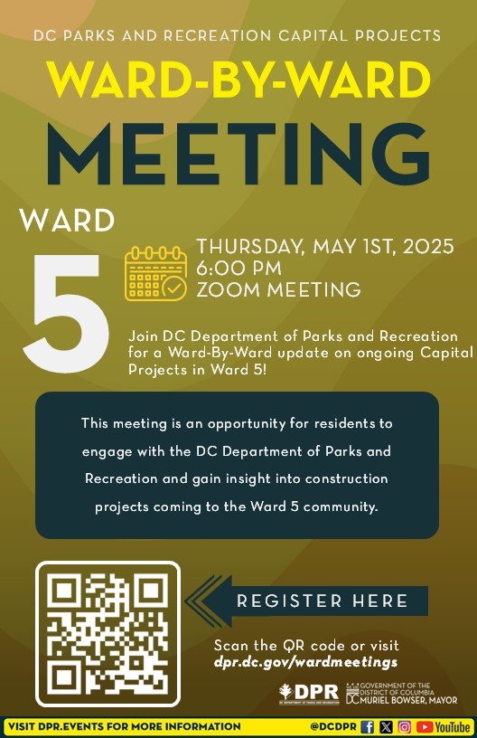 Join the DC Department of Parks and Recreation (DPR) for an update on park/rec center construction projects in Ward 5.