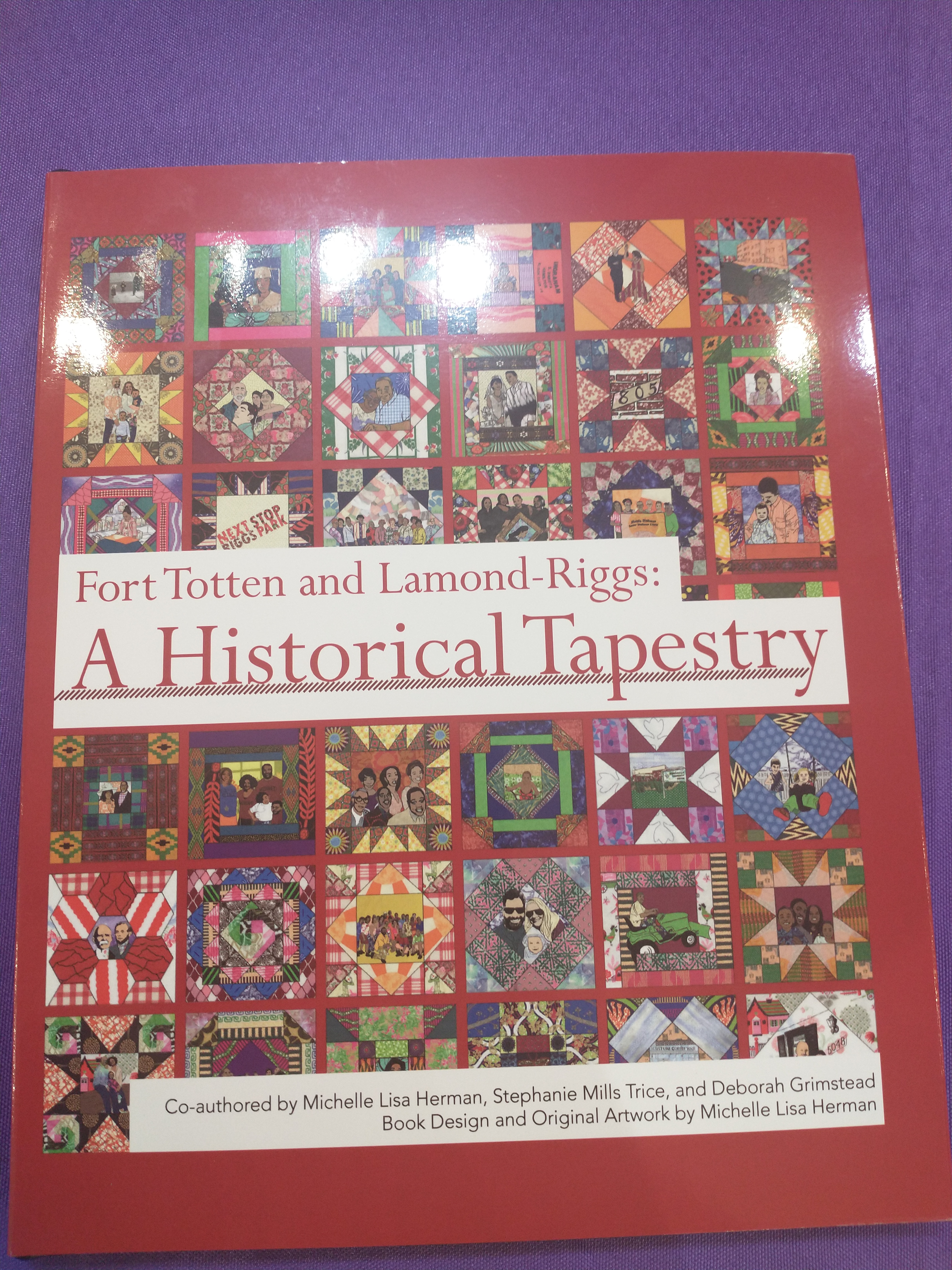 The Heritage Wall at the Lamond-Riggs Library now has a beautiful companion book, “Fort Totten and Lamond-Riggs: A Historical Tapestry,” co-authored by Michelle Lisa Herman, Stephanie Mills Trice, and Deborah Grimstead. The book stitches together written narratives and excerpts of oral histories from contributors to the Heritage Wall, as well as photos of the original artwork from the permanent installation.