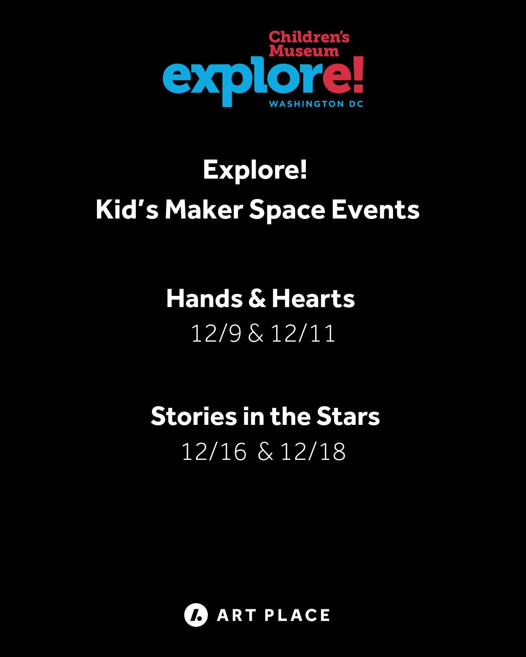 Explore! Kid’s Maker Space Hands & Hearts | December 9 & 11, 4pm-7pm