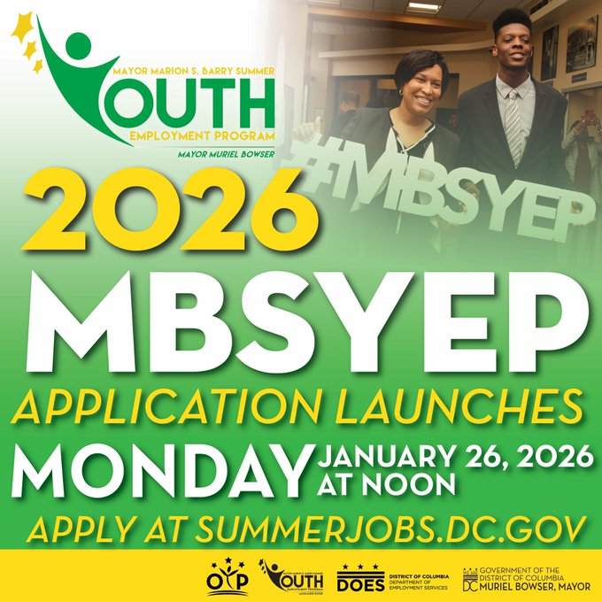 DC residents ages 14 to 24 can now apply to participate in DC’s 2026 summer youth employment program. The deadline to apply is March 6, 2026. Apply at https://summerjobs.dc.gov.