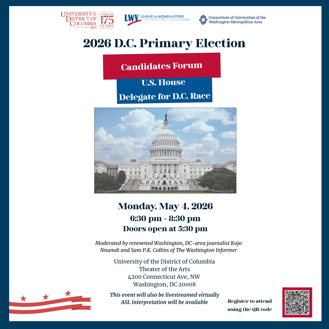 UDC is hosting a DC Delegate candidate forum on May 4, moderated by Kojo Nnamdi.