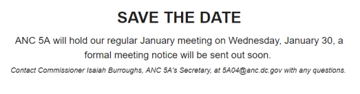 Please direct any questions to Commissioner Burroughs, ANC 5A’s Secretary at 5A04@anc.dc.gov