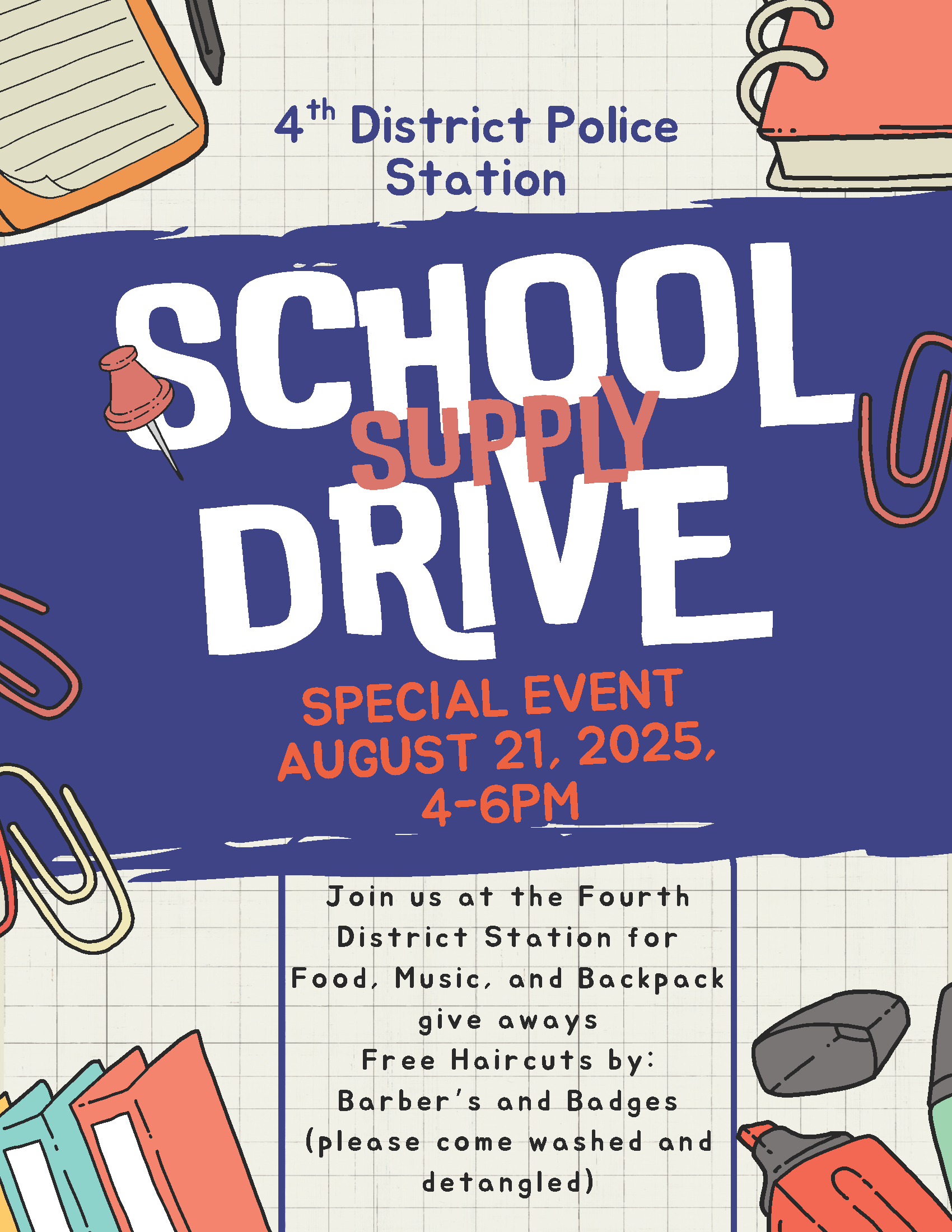 On August 21, 2025, 4pm-6pm, MPD 4th District officers will offer free backpacks and free haircuts while supplies last, 6001 Georgia Avenue NW. Child must be present to obtain a backpack.