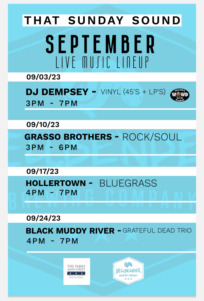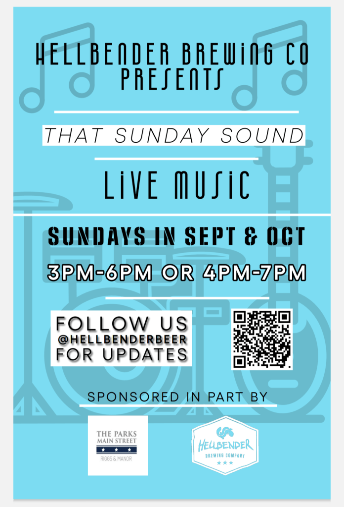 Hellbender is also bringing us Sunday Sounds. Summer is right around the corner. The weather is heating up and it’s the perfect time for That Sunday Sound. That Sunday Sound is a live music series sponsored by Hellbender Brewing Company and The Parks Main Street. Join Hellbender and The Parks Main Street for this FREE event, Sundays in June from 3:00 pm-5:00 pm to enjoy local musicians.