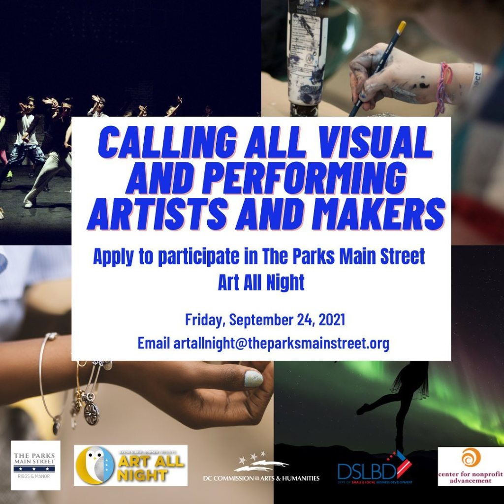 Art All Night at The Parks Main Street is back! Don’t miss your chance to participate in Art All Night 2022 in Riggs Park and Manor Park DC as an artist, performer, or vendor.