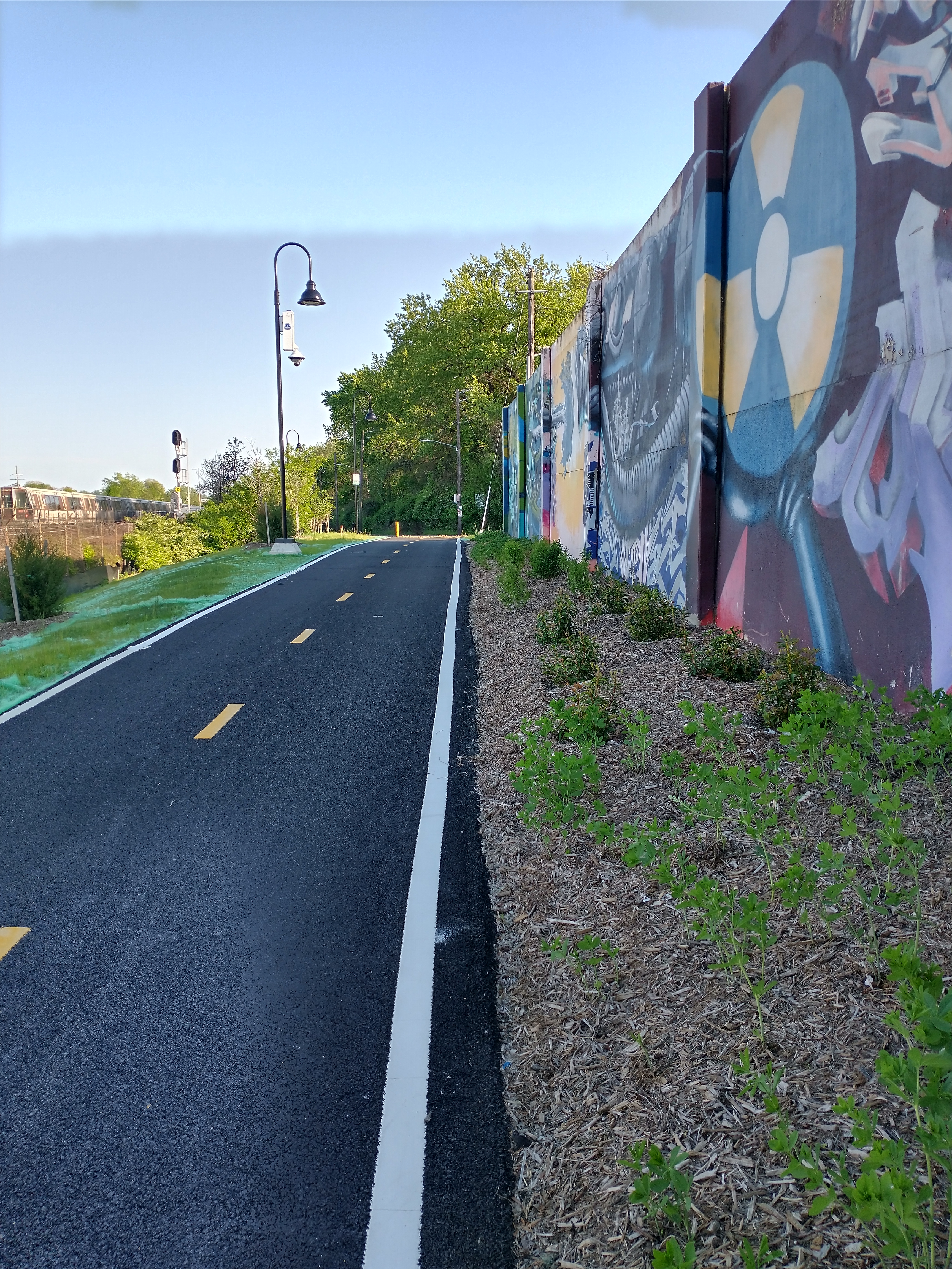 Construction of the trail segment along Eastern Avenue between Piney Branch Road and Baltimore Avenue was completed in June 2021.