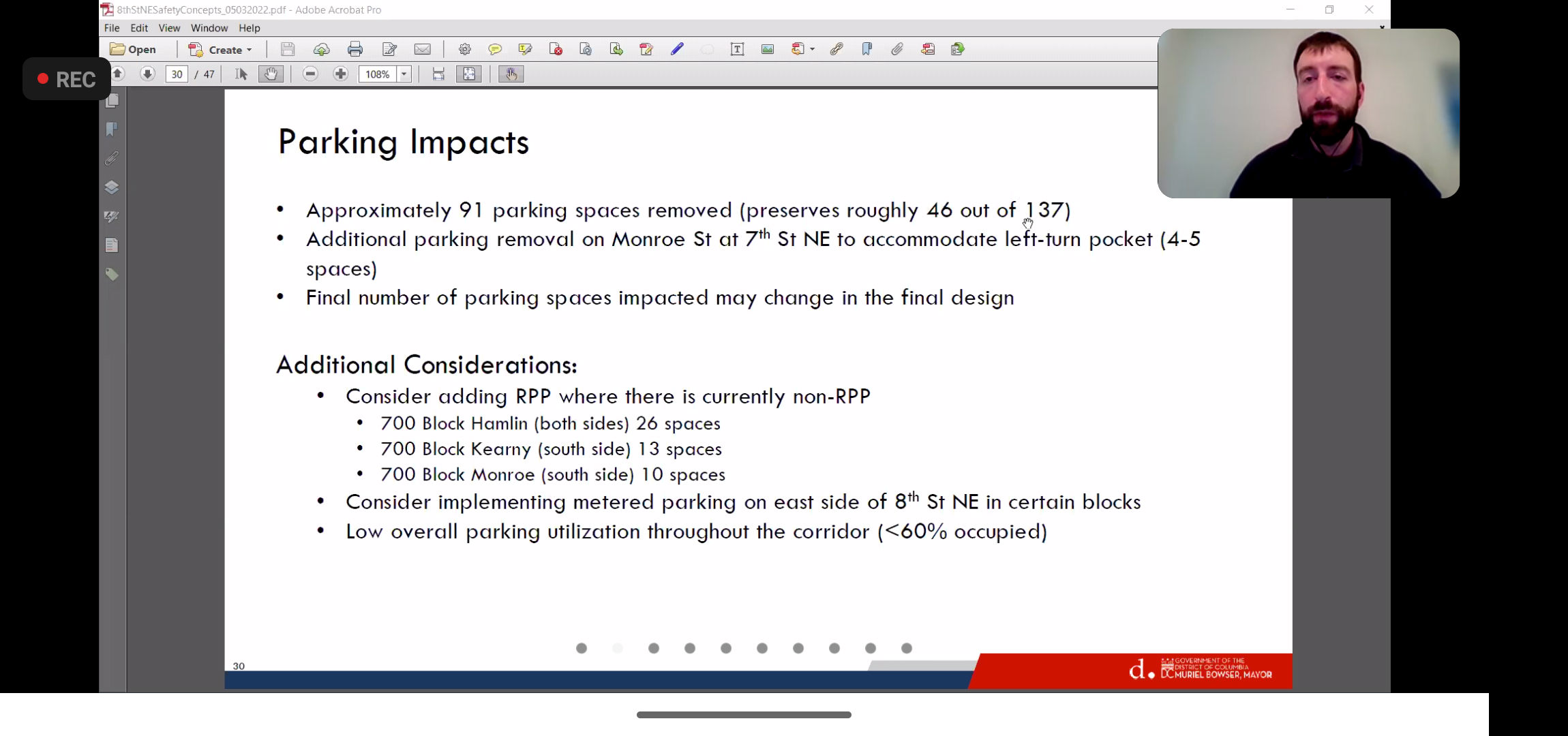There was a lot of discussion about impacts to parking along Blair Road and discussion about how DDOT will deal with the many driveways along Blair with signage, markings, and etc.