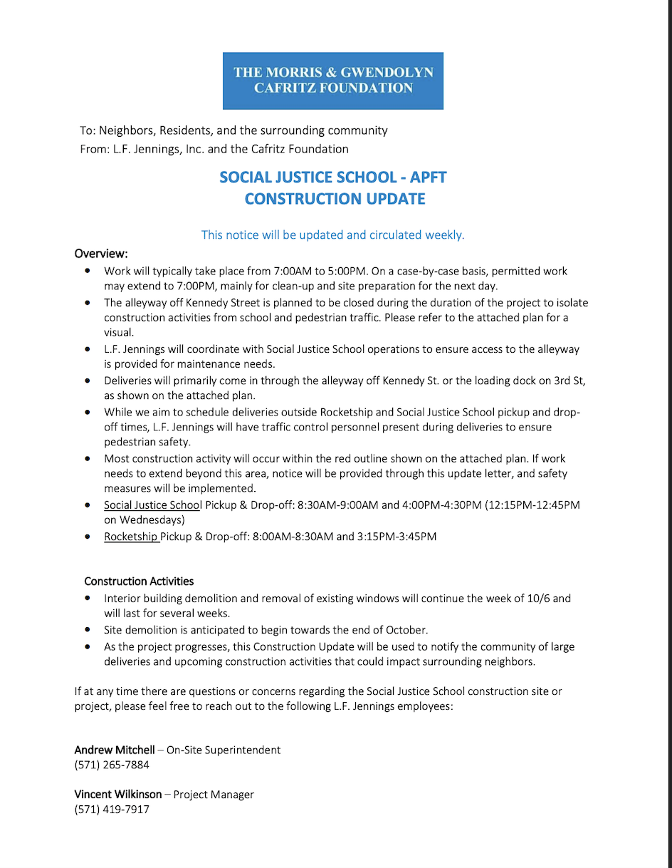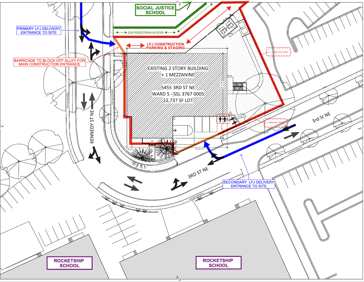 [Ed. Note: Social Justice School is starting renovation of the existing warehouse at 3rd & Kennedy Street NE at Art Place at Fort Totten for its permanent home.]