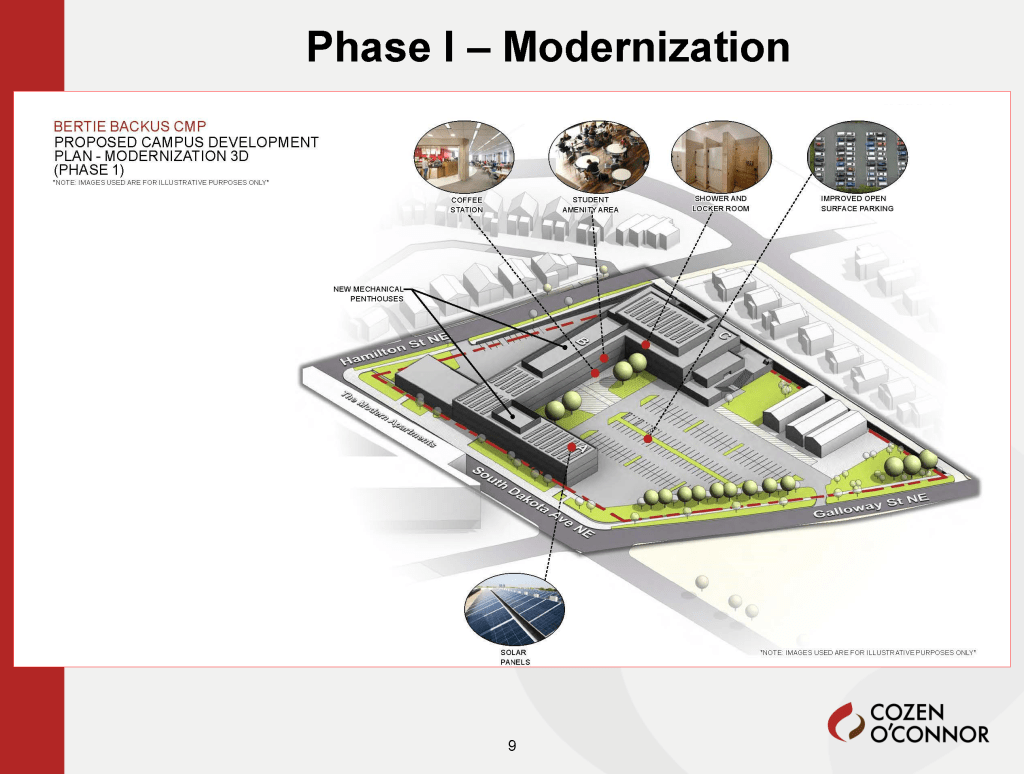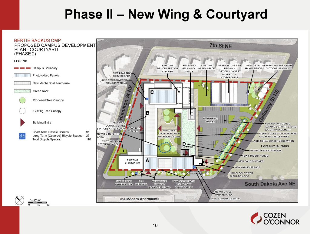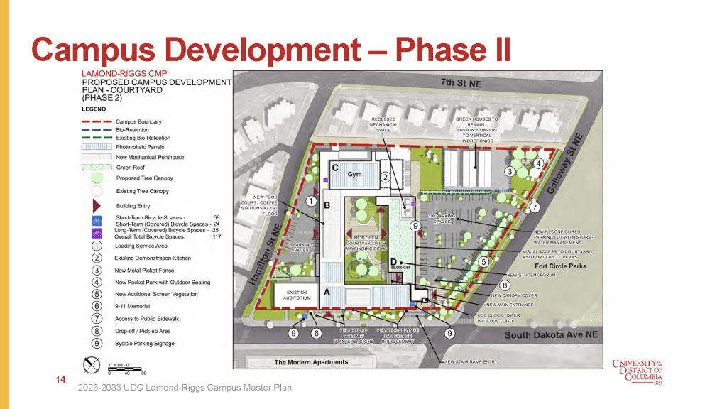 Phase 1 would involve renovating the existing buildings on campus.Edited to add: UDC is requesting to proceed with Phase 1 renovations as a matter of right. The university would return to the Zoning Commission to proceed with Phase 2 activities.
