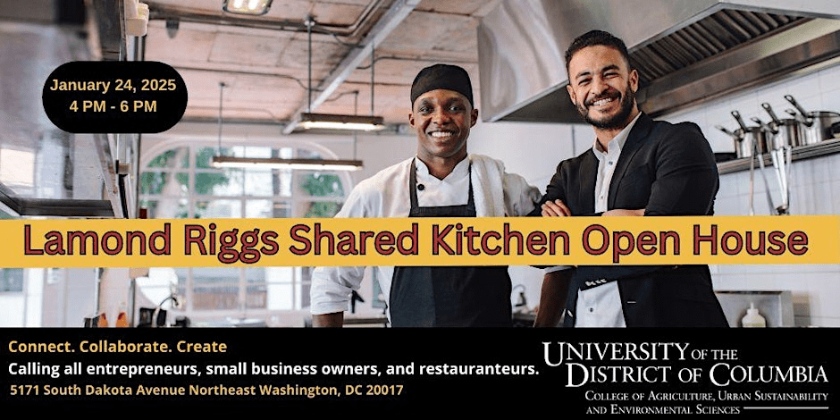 UDC’s College of Agriculture, Urban Sustainability, and Environmental Sciences (CAUSES) will be holding a Shared Commercial Kitchen Open House at UDC’s Lamond-Riggs campus on January 24, 2025, 4pm-6pm.