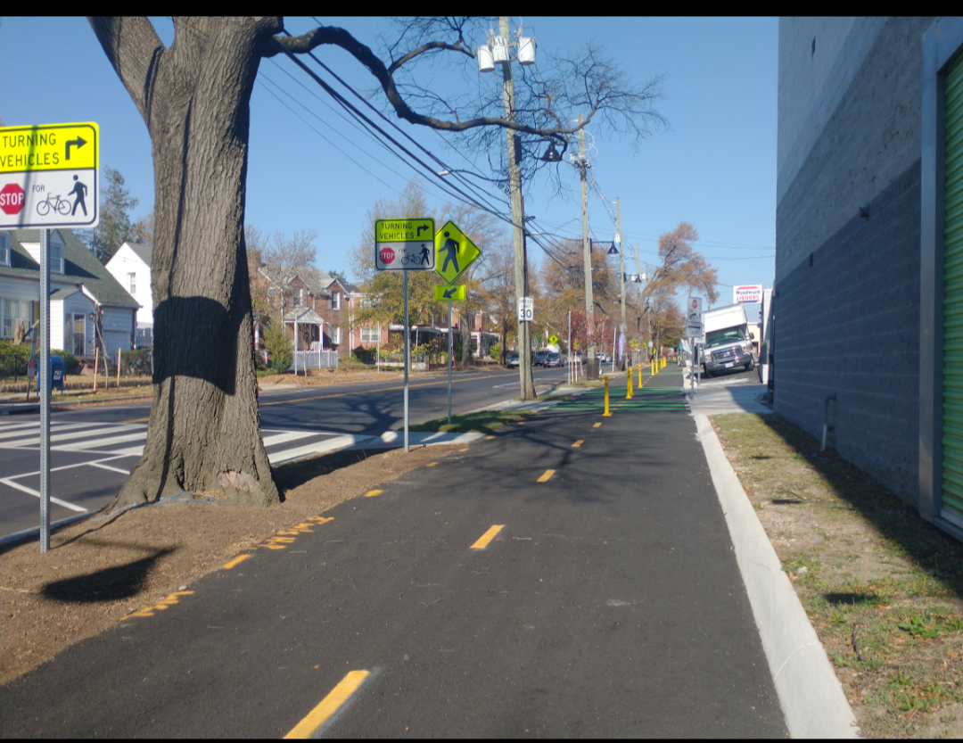 The Kansas Ave NW Protected Bike Lane is a multimodal safety project that includes the following features to improve safety for all roadway users: