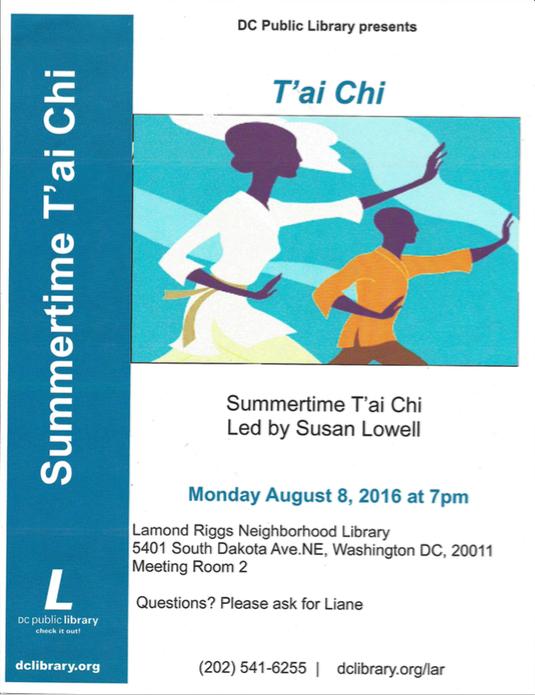 August 8: T’ai Chi at Lamond-Riggs Library at 7:00pm