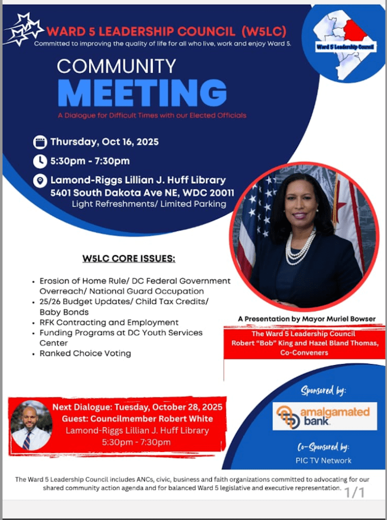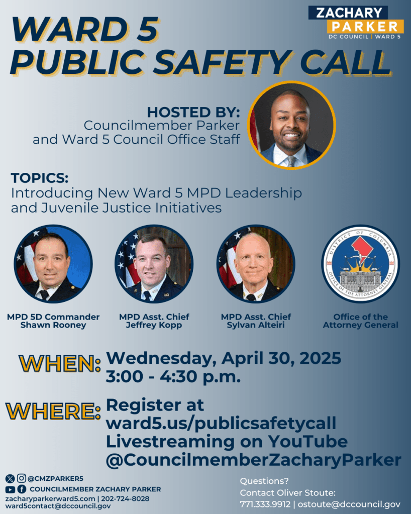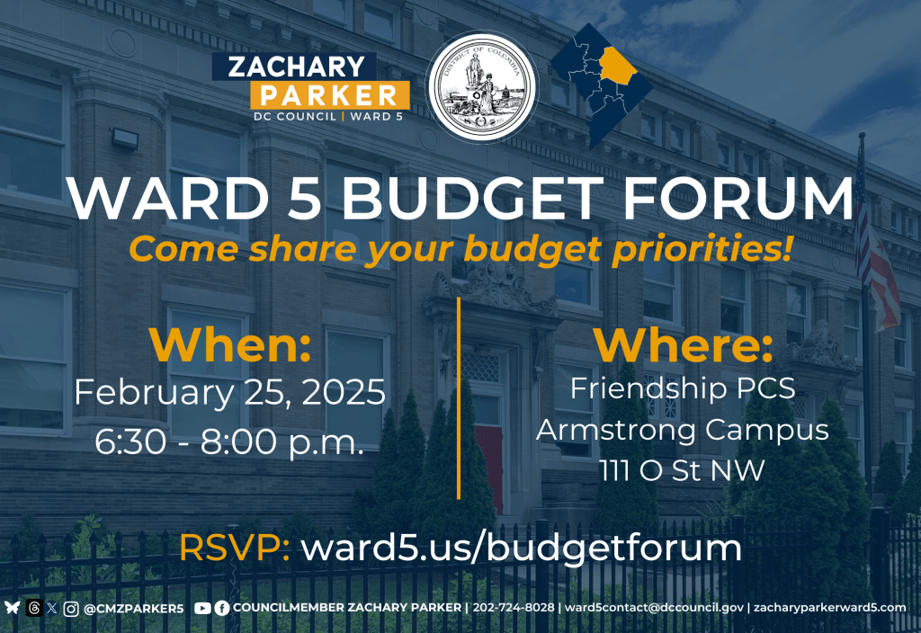 Additional information will be sent ahead of November 20. For any questions or concerns, please call CM Parker’s office at 202-724-8028, or email ward5contact@dccouncil.gov.