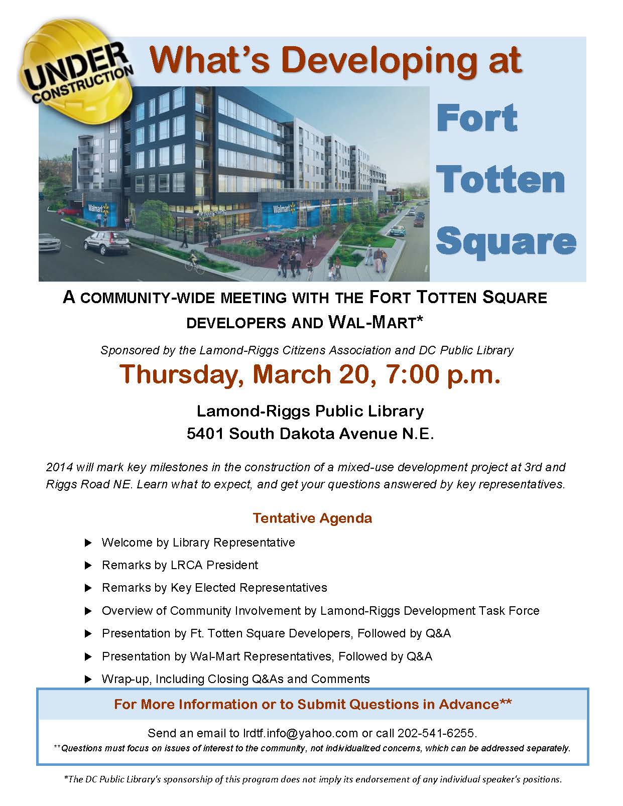 With respect to the two major developments underway in the neighborhood, the tour highlighted the difference in engagement between the team for Art Place at Fort Totten and the team behind Fort Totten Square. No one from the Art Place team was on hand to provide updates on the project. Residents and representatives from the Lamond Riggs Development Task Force filled in the gaps. We know that a bid is out for general contractors, with a selection expected to be made in July.