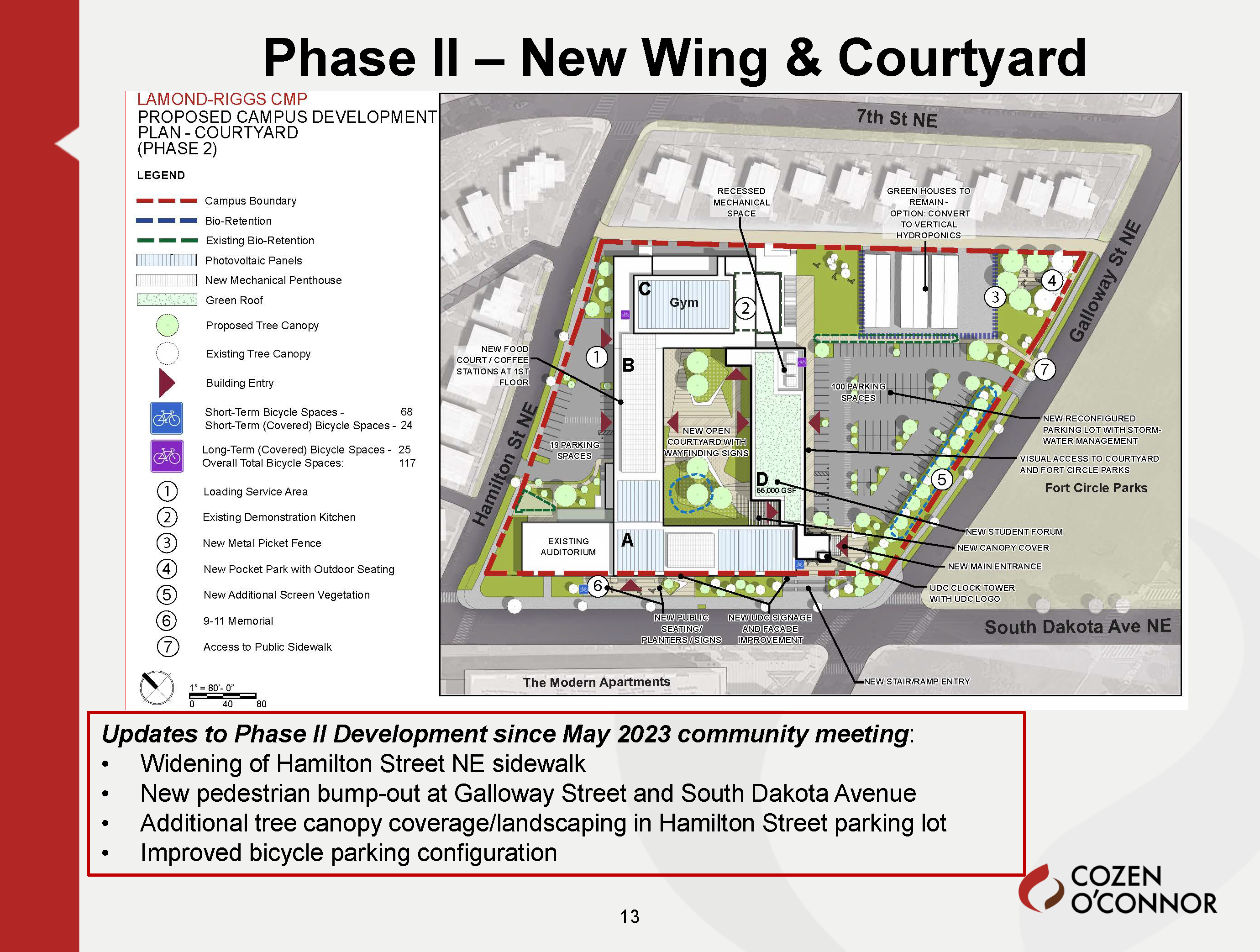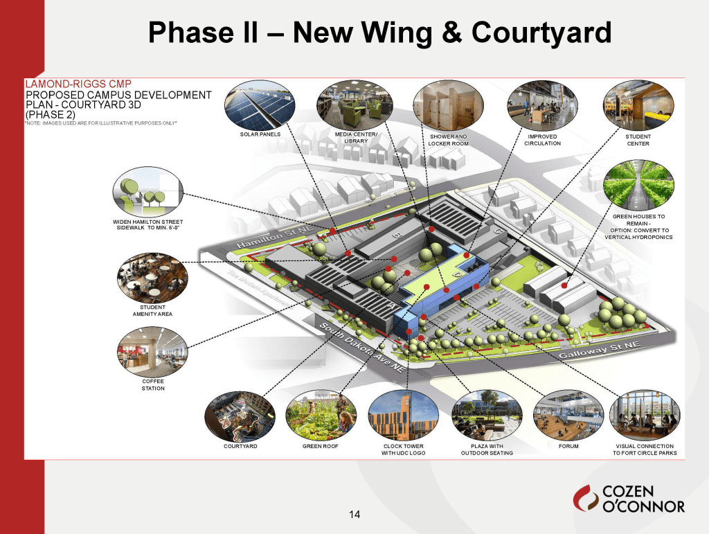 Phase 2 activities will occur during the second half of the plan (during years 5-10 of the plan). Funding is still needed for Phase 2 activities. UDC will have to provide notice and return to the Zoning Commission before beginning construction on the new wing.